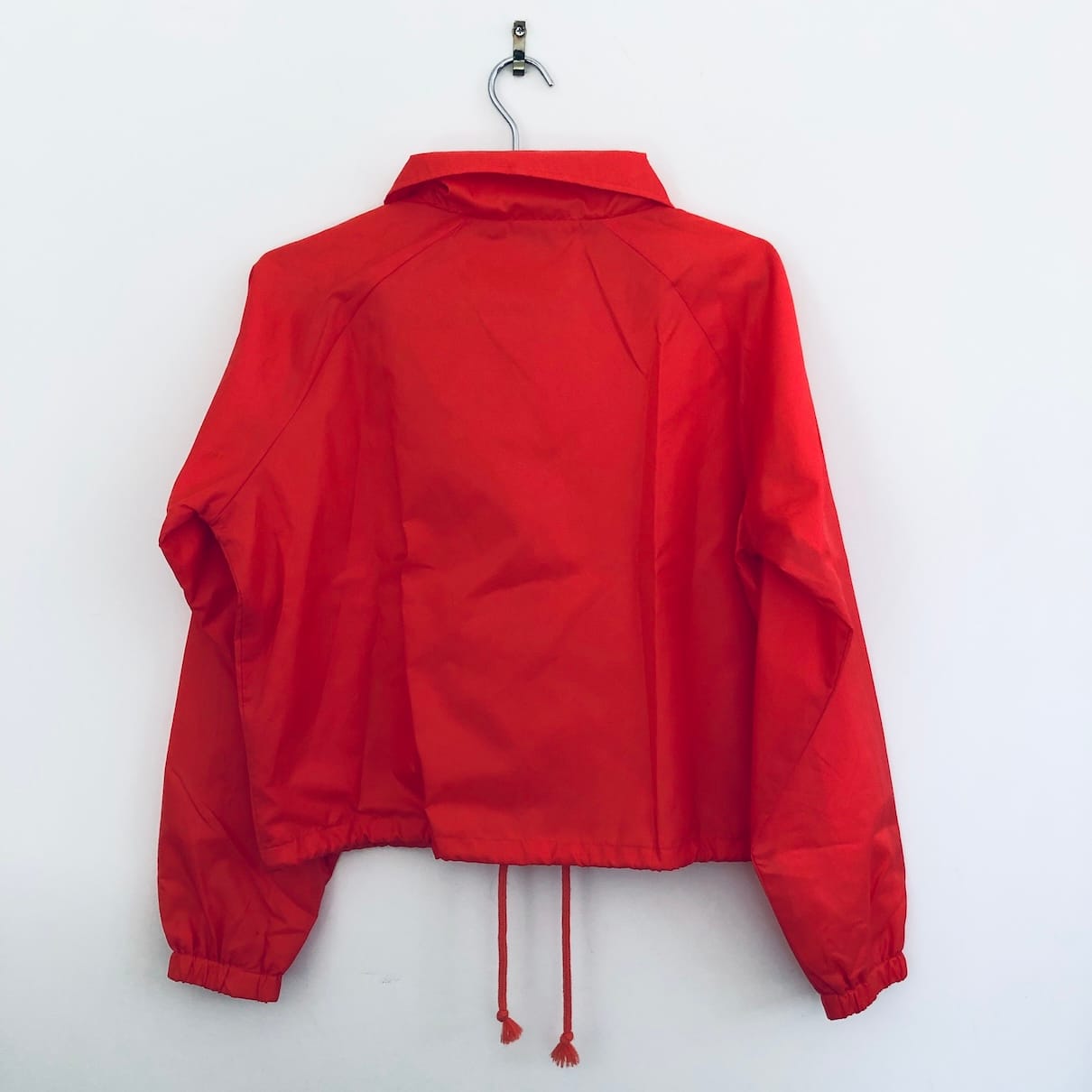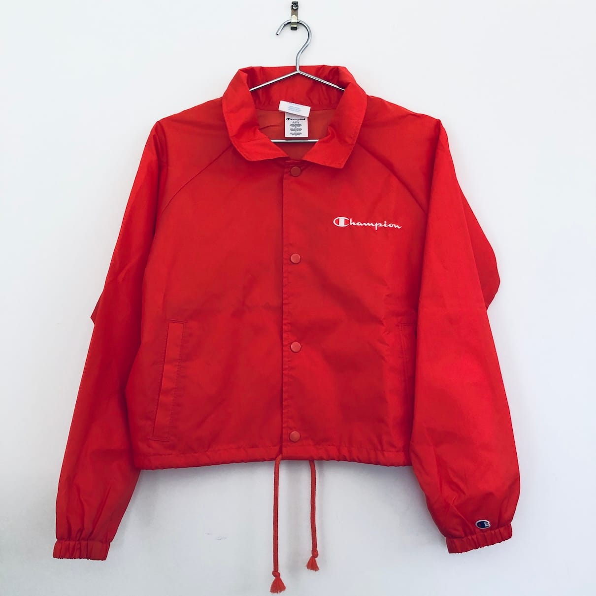 Champion Cropped Coach Jacket Red Windbreaker Snap Front (Size S–M)
